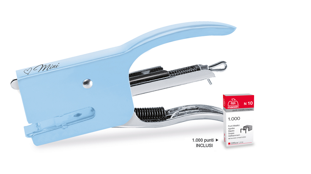 Mini pinces agrafeuses pour bureau entièrement constituée de composants en métal tranché de très grande qualité. Design moderne et ergonomique, grâce aux deux poignées arrondies conçues pour obtenir une facilité d’utilisation maximale et obtenir avec un effort minimum un agrafage souple et précis.