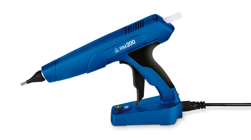Colleuses électriques pour adhésifs thermofusibles de ligne neuve. Légères et maniables pour une utilisation professionnelle. Adaptées pour des montages et des réparations sur bois, plastique, carton, caoutchouc et cuir, pose et réparation de carrelage et de porcelaine. Pour colles standards Ø 12 mm.